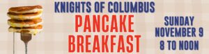 Join us on Sunday, November 9 from 8:00 a.m. to noon in the Sacred Heart School Cafeteria for a delicious breakfast hosted by the Knights of Columbus! We’ll be serving up pancakes, scrambled eggs, sausage, biscuits and gravy, hash browns, coffee, juice, and milk — something for everyone to enjoy! $10 for adults $5 for children 12 and under. Come hungry and support a great cause while enjoying good food and great company!